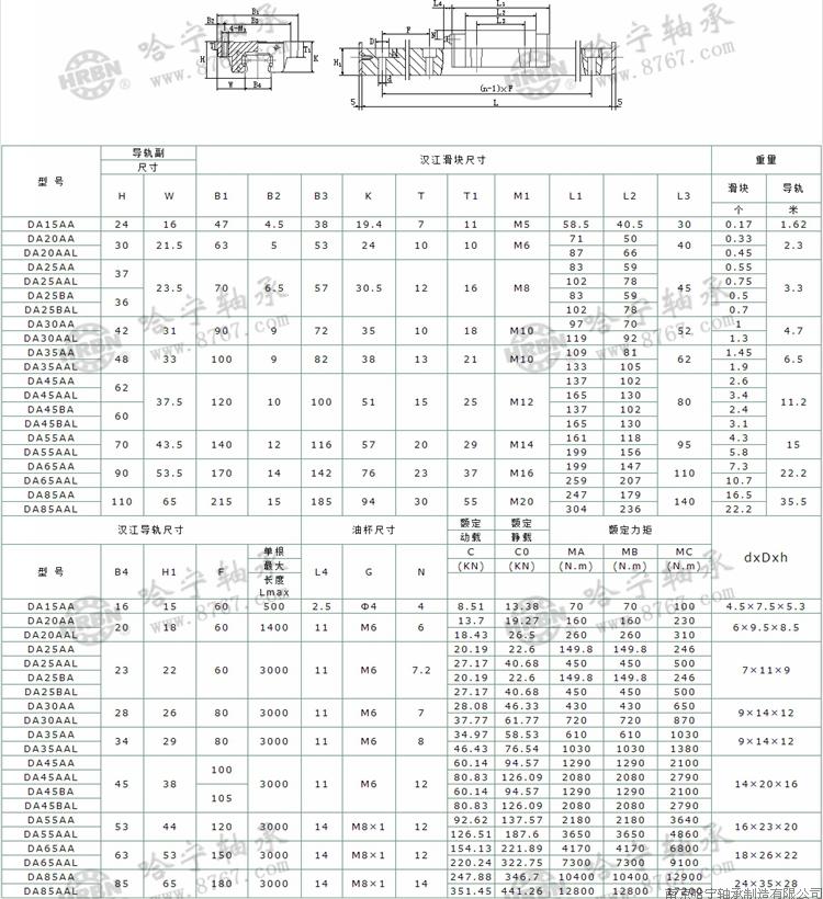DA20AA滑塊、DA25AA滑塊、DA30AA滑塊、DA35AA滑塊