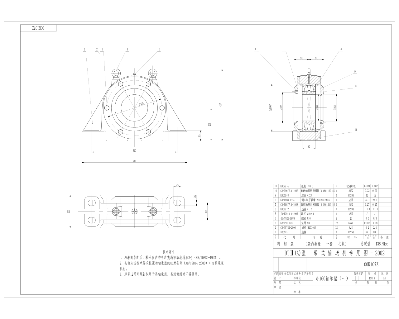 00K107Z傳送機(jī)專用軸承座 座體 透蓋 悶蓋 軟鋼紙墊 A型CAD圖紙